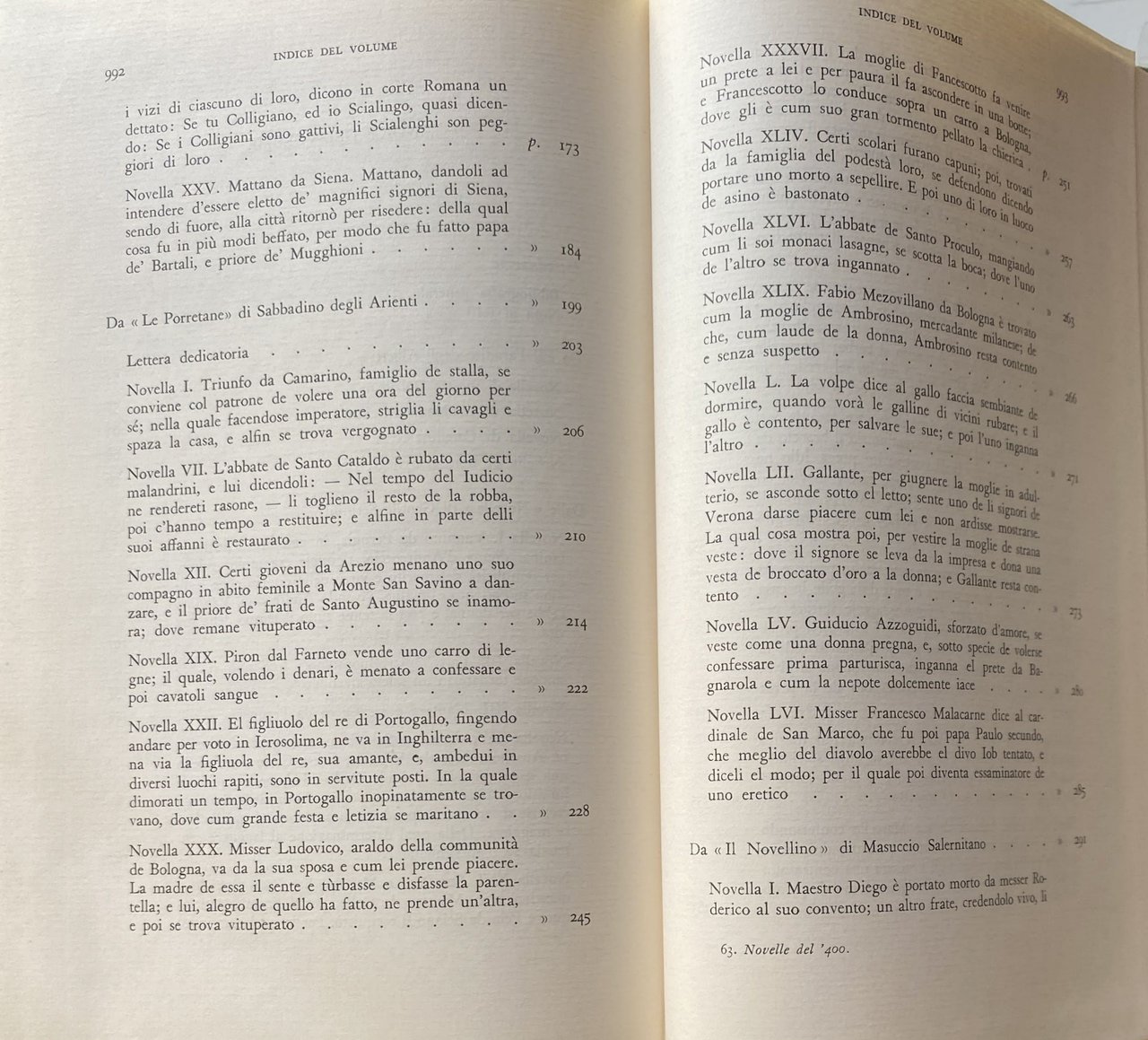 Soggetti: Letteratura ludica italiana, Classici, Critica letteraria, Antologie, Raccolte, Umanesimo, Rinascimento, Quattrocento, Novellieri, Novelle italiane, Poesia, Burle, Racconti, Toscano, Lingua, Volgare, Pius Papa Pio 2 Testi Collezionismo, Riferimento Bibliografia Cultura classica Toscana Binni Sapegno Muscetta Chiari Tradizione novellistica Prosa Di Francia Bandella Prosatori Caretti Guglielminetti Spicciolate Motti Facezie Scherzi Amore cortese Paradiso degli Alberti Novellino Porretane Segre Petrocchi Collezionismo Libri rari fuori catalogo Edizioni pregiate Gianfranco Folena Apparato critico Dolcibene Boccaccio Peste Bernabò Commedie Ironia Umorismo G. Ponte Gambarin Codice Palatino Modena Este Medici Firenze Cortigiani Wesselofsky Miscellanea fiorentina Cecco Giambattista Passano Gioco Giovanni Papanti Francesco Marcolini Francesco Sansovino Frontespizio Gaetano Poggiali Borromeo Brunet Novellette Venezia Alessandro Fontana Bernardino Tomitano Inedite Luigi da Porto Giostra Torneo Caccia Scherma Giochi Dadi Scacchi Baratteria Feste Musica Danza Racconti Giornata Divertimento Antonfrancesco Grazzini Apostolo Zeno Niccolò Macchiavelli Accademici della Crusca Enea Silvio Piccolomini Commentarii Borso d'Este Angelica Montanini Anselmo Salimbeni Dante Ferrante Aragona Regno di Napoli Pietro Aretino Borlenghi Benuccio d'Arezzo Cortigiano Bernardino da Siena Bertoldo Gentildonne Umanisti Leonardo Bruni Catullo Cavalcanti Duns Scoto De Robertis Eurialo Marsilio Ficino Filippo Brunelleschi Fatini Galeazzo Visconti Borbone Eugenio Garin Lucrezia Camilli Lorenzo il Magnifico Menelao Ovidio Giovenale Pontano Angelo Poliziano Arlotto Piovano Franco Sacchetti Terenzio Virgilio Trionfo Stradino Perugia Madonna Ricciarda Bonifazio degli Uberti Scherzo Motti Facezia Lettere Mariano Sozzini Sigismondo Kaspar Schlick Cicerone Classicismo Ferdinando Neri Mario Fubini Chiesa Storia Anthologie Geschichte Italienisch Littérature italienne 15e siécle Nouvelle Beffa Bella Borlenghi Brigata Cavaliero Cavallo Compagno Decameron Desiderio Donna Famegli Filoconio Fiorini Frate fusse Giacoppo Giovane Ieronimo Inganno Maestro Meraviglia Marito Matteo Messer Montanina Morte Moglie Prete Roderico Santo Siena Signore Vannino Varese Virtù Modelli Influenze culturali Trecentonovelle Sacchetti Giovanni Gherardi da Prato Latino Tommaso Guardati Composizioni letterarie Federico III Amanti Grasso legnaiuolo Antonio Tuccio Manetti Manetto Ammannatini Donatello Italian playful literature Classics Literary criticism Anthologies Collections Humanism Renaissance Quattrocento Short stories Italian short stories Poetry Jokes Short stories Tuscan Language Vulgar Pope Texts Collecting Reference Bibliography Classical culture Tuscany Short story tradition Prose writers Tricks and pieces Sayings Courtly love Paradise Secrets Collectibles Rare books out of print Valuable editions Critical apparatus Plague Comedies Irony Humor Palatine Codex Florence Courtiers Florentine miscellany Game Frontispiece Short stories Venice Unpublished Joust Tournament Hunting Fencing Games Dice Chess Barateria Parties Music Dance Stories Fun Day Academics Commentaries Kingdom of Naples Courtiers Gentlewoman Humanists Bourbon the Magnificent Ovid Juvenal Terence Virgil Triumph Jokes Letters Cicero Classicism Church History Prank Beautiful Brigade Knight Horse Companion Desire Woman Joke Friar Deception Master Wonder Husband Death Wife Priest Saint Virtue Models Cultural Influences Vulgar Latin Literary compositions Frederick III The Fat carpenter