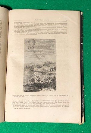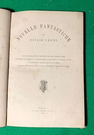 In 4°; (4), 220 pp. Legatura coeva in mezza-pelle scura con dorso a 5 nervi. Autore, titolo, e filetti in oro ai tasselli. Piatti foderati di percallina nera. Alcune strofinature. Alcuni lievi segni del tempo e nel complesso, in buone condizioni di conservazione. Prima edizione italiana di questa serie di racconti di Jules Verne. Numerose illustrazione nel testo. L'opera contiene: Mastro Zaccaria ovvero l'orologiaio che aveva perduto l'anima; Un inverno tra i ghiacci o il capitano della giovane ardita; Un dramma in aria; Il dottor Oss; Edgardo Poe e le sue opere; Un episodio del terrore ovvero il conte di Chanteleine; I violatori del blocco.