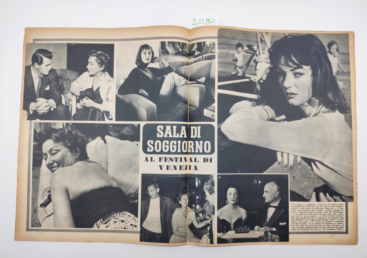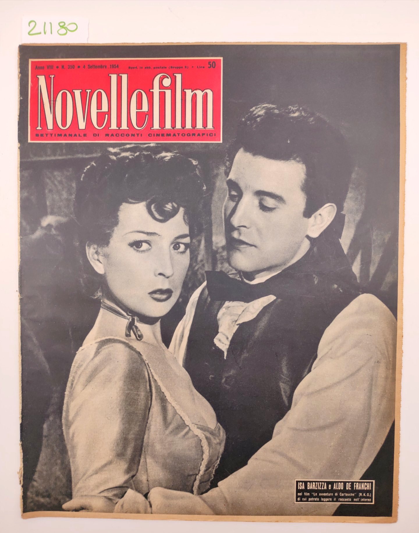 Settimanale di racconti cinematografici, legatura morbida editoriale in condizioni accettabili con bruniture piccoli strappi ai margini, dorso in precarie condizioni con rotture e mancanze, tagli leggermente bruniti, numero pagine 31 dimensioni cm 35,5 * 28