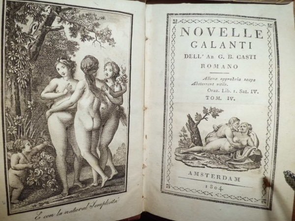 IN - 12°, 5 VOLUMI, M. PELLE COEVA CON IL DORSO DECORATO IN ORO. MANCA IL VOLUME UNO, MA LE NOVELLE DESCRITTE SONO INDIPENDENTI L' UNA DALL' ALTRA. VOL. II. 215 PP.; VOL. III. 216 PP.; VOL. IV. 252 PP.; VOL. V. 239 PP. IN TUTTI I VOLUMI VI SONO SPLENDIDE TAVOLE INCISE IN RAME, NELL' ANTIPORTA E NEL FRONTESPIZIO. IN OTTIMO STATO DI CONSERVAZIONE.