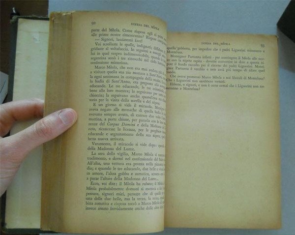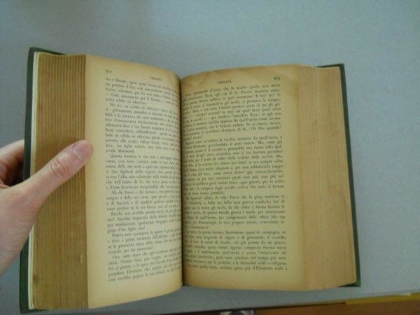 - Leg. tela edit. (tracce d'uso alle copert., dedica ms. al frontesp. del II vol. e macchia d'umido ad alcune cc.).