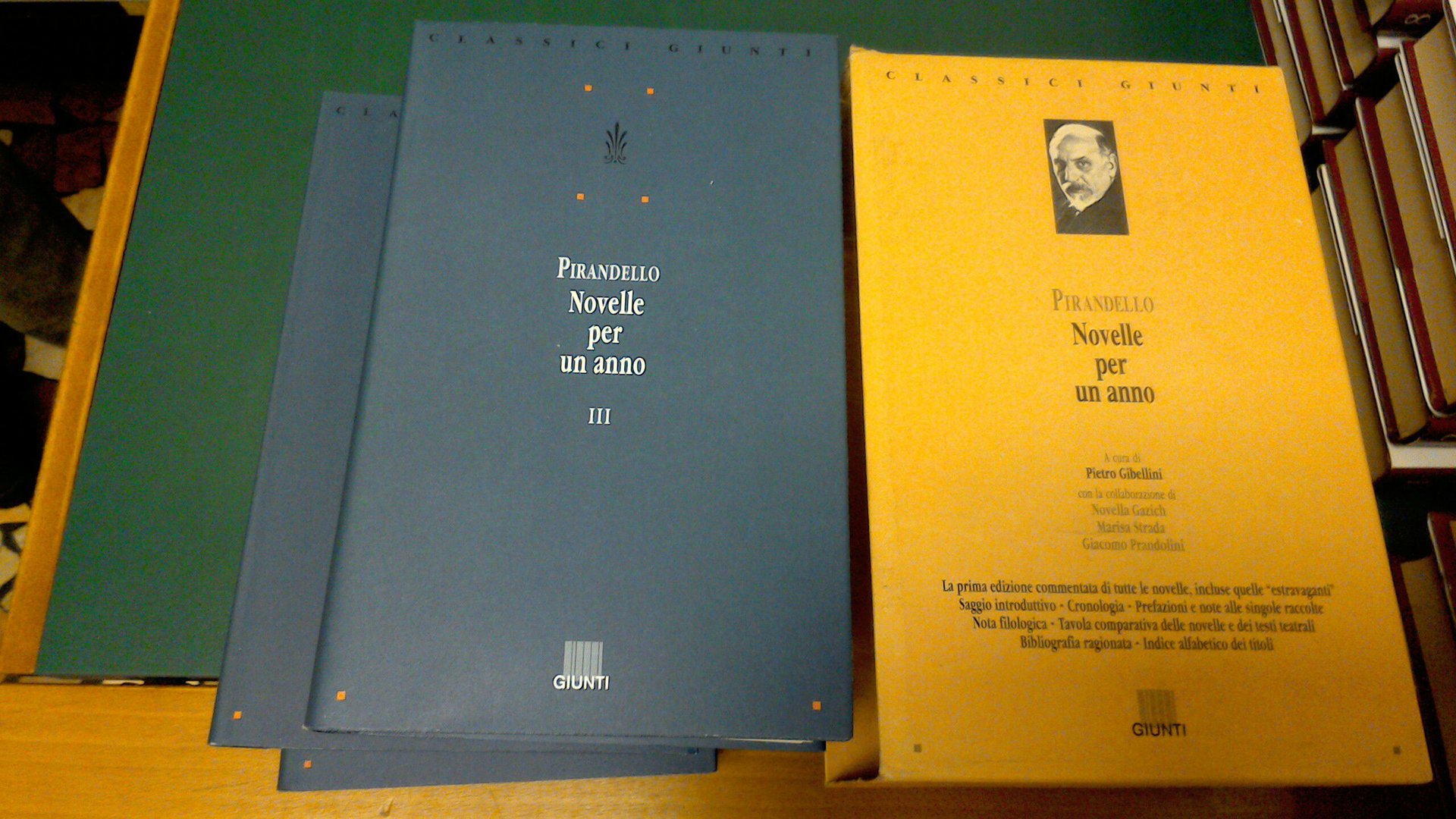I volumi contengono: Scialle nero; La vita nuda; La rallegrata; L'uomo solo; La mosca; In silenzio; Tutt'e tre; Dal naso al cielo; Donna Mimma; Il vecchio Dio; La giara; Il viaggio; Candelora; Berecche e la guerra; Una giornata.