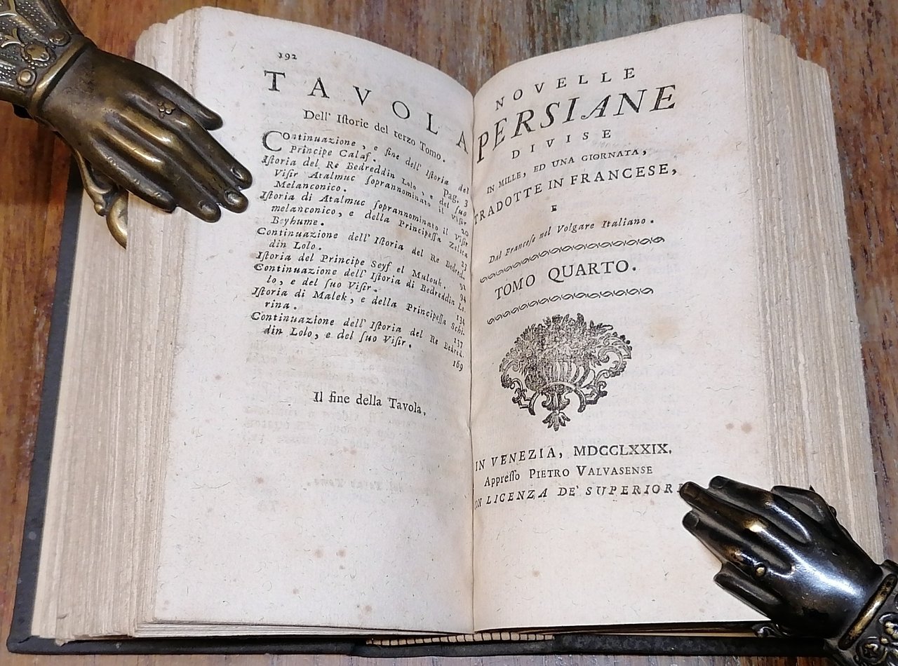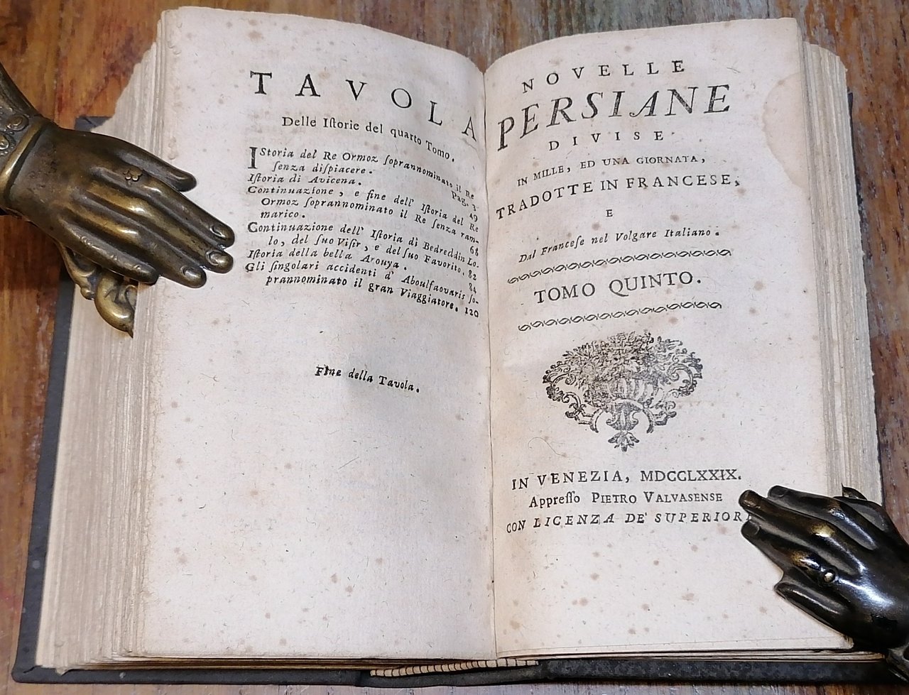 Novelle persiane divise in mille, ed una giornata, tradotte dal francese, e dal francese nel volgare italiano.