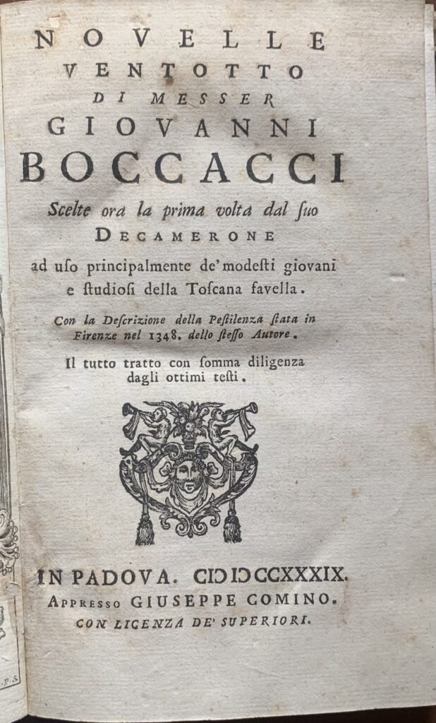 Novelle ventotto. Scelte per la prima volta dal suo Decamerone ad uso principalmente de' modesti giovani e studiosi della toscana favella.