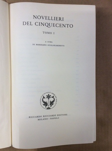 NOVELLIERI DEL CINQUECENTO. Tomo I.
