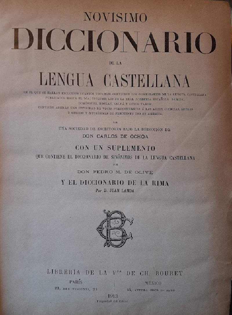 NOVISSIMO DICCIONARIO DE LA LENGUA CASTELLANA(1913)