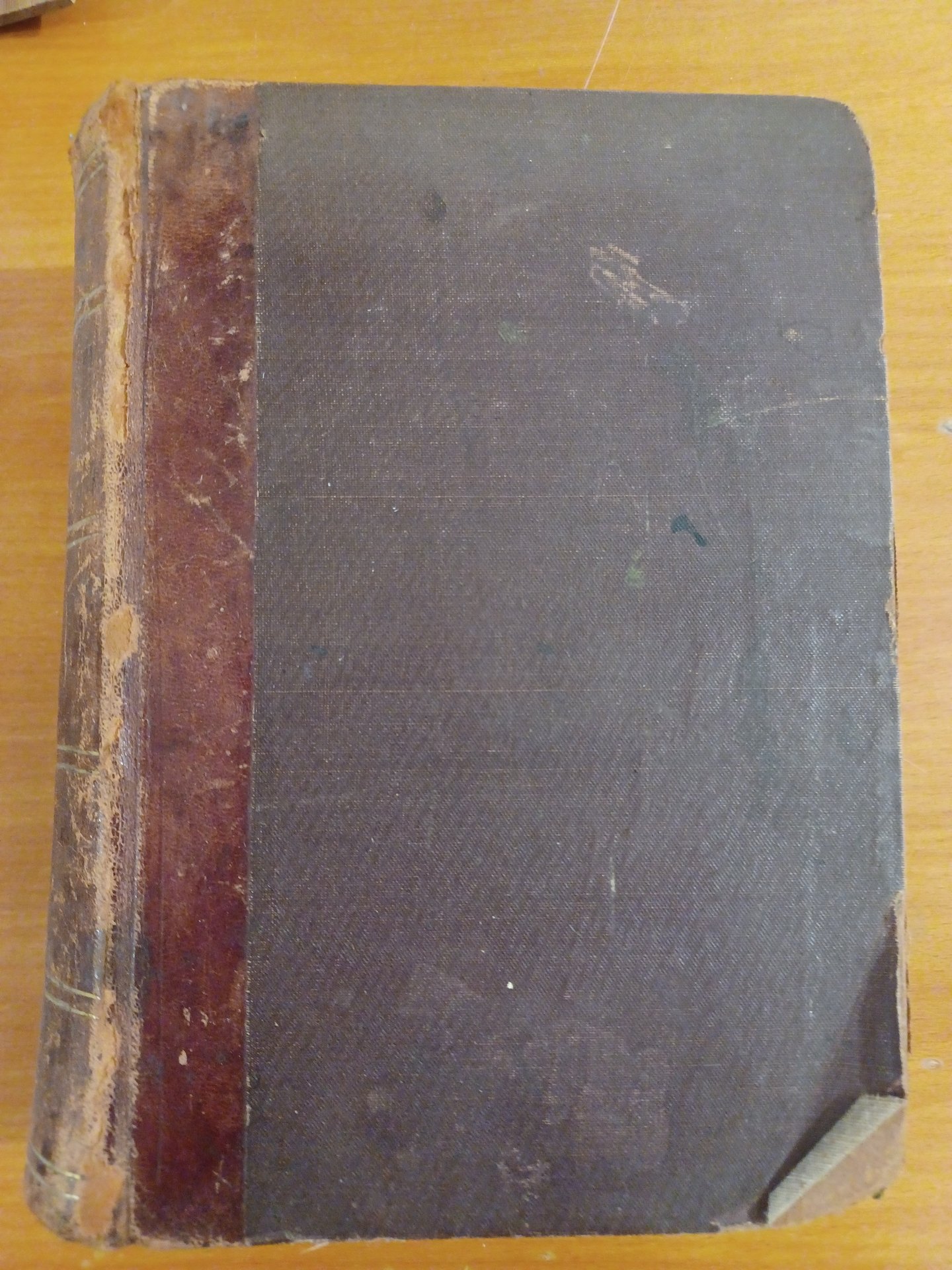 Testo a tre colonne, con lemmi in grassetto. Pagine ingiallite e legatura in cartone rigido leggermente rovinata. Presenta firme.