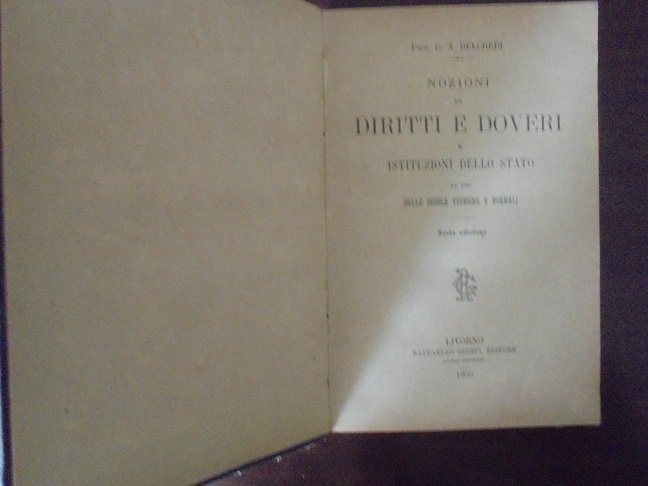 NOZIONI DI DIRITTI E DOVERI E ISTITUZIONI DELLO STATO AD USO DELLE SCUOLE TECNICHE E NORMALI