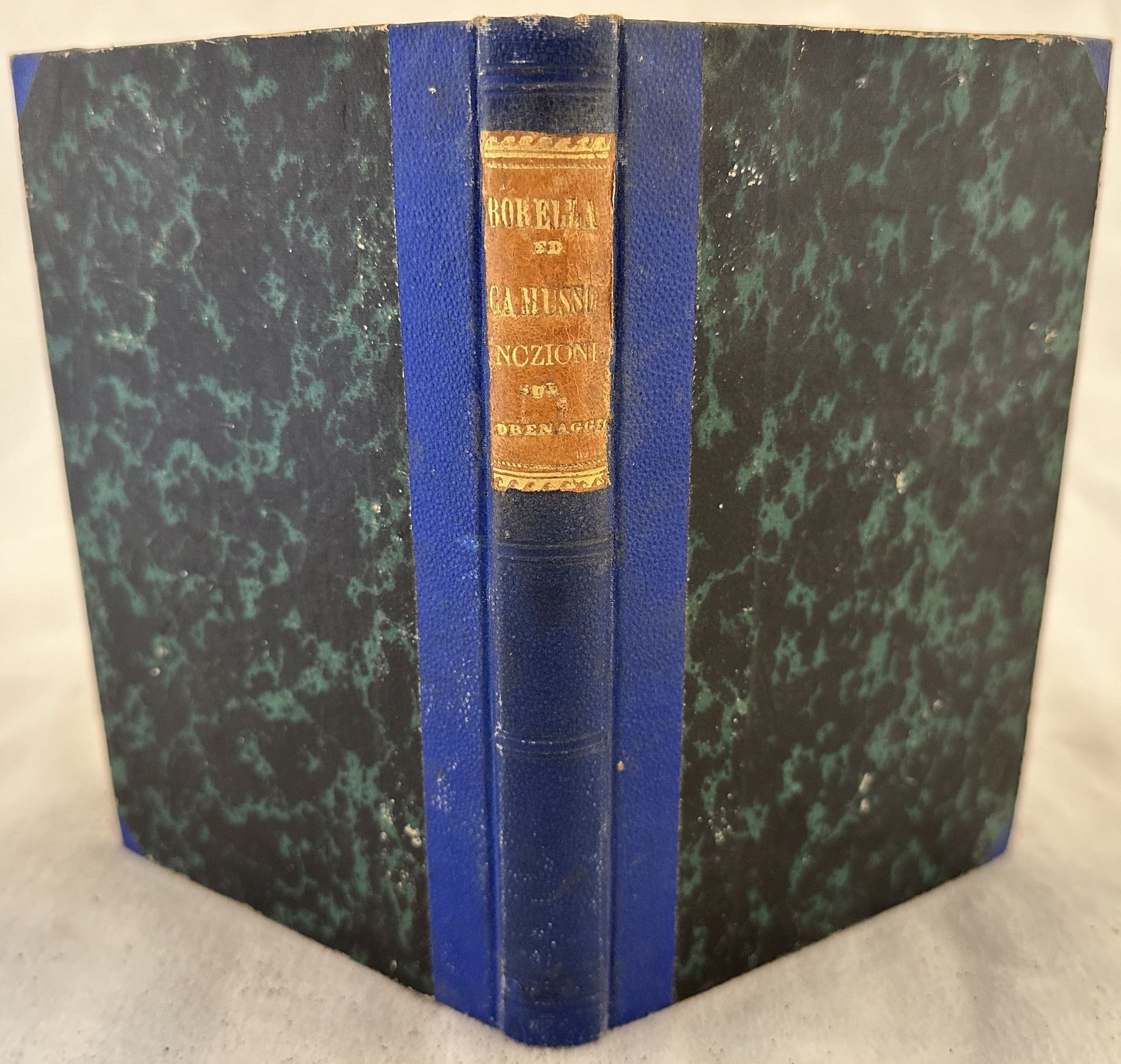 Interessante studio del 1857 sul drenaggio dei terreni umidi degli ingegneri torinesi C. Borella ed E. Camusso. Alcune illustrazioni all'interno che mostrano vedute e strumenti. All'interno: Storia del drenaggio in Italia (Lombardia, Toscana, Romagne, Ducati e due Sicilie, Piemonte) ed Europa a partire dall'epoca romana; Dei diversi metodi di fognatura e superiorità del drenaggio profondo con tubi; Fabbricazione dei tubi; Studio ed esecuzione di un progetto di drenaggio; Effetti del drenaggio e suoi risultati finanziabili; Della necessità di propagare il drenaggio in Piemonte e dei modi più acconci per farlo ecc. Alcune sottolineature. In buone condizioni. Copertina in mezza tela con titolo in oro su tassello al dorso in buone condizioni generali con lievi usure marginali. Legatura in buone condizioni. Pagine in buone condizioni con fioriture. In 16. Dim. 18,5x12. Pp. 232+(2).Interesting study of 1857 about drainage of wet soils by the engineerings from Turin C. Borella and E. Camusso. Some illustrations inside showing instruments and views. Some underlinings. In good conditions. Half cloth cover with gilted title in the spine in good conditions lightly worn in the extremities. Binding in good conditions. Pages in good conditions with foxing. In 16. Dim. 18,5x12. Pp. 232+(2).