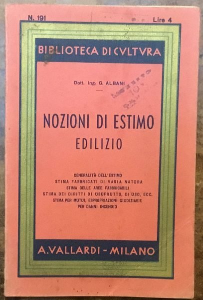 Nozioni di Estimo edilizio. Biblioteca di Cultura n.191