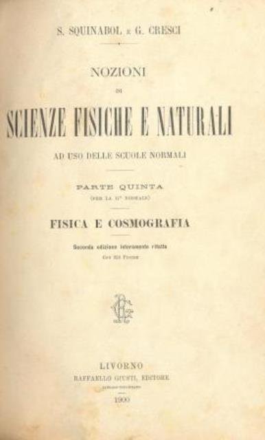 Nozioni di scienze fisiche e naturali ad uso delle Scuole Normali. Parte Quinta (per la II Normale). Fisica e Cosmografia.