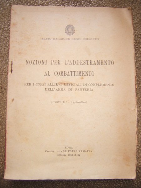 NOZIONI PER L'ADDESTRAMENTO AL COMBATTIMENTO PER I CORSI ALLIEVI UFFICIALI DI COMPLEMENTO DELL'ARMA DI FANTERIA. PARTE II ESPLICATIVA.