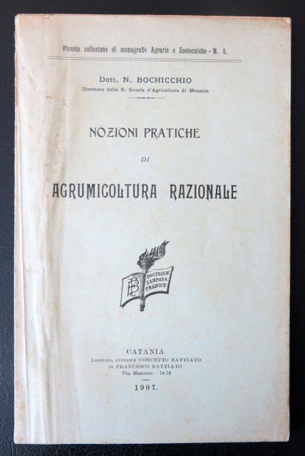 Francesco Battiato, Catania, 1907. Piccola Collezione di Monografie Agrarie e Zootecniche, N. 6. In 8vo, pp. 90 + 1 (Indice), ill. fot. in b/n n. t., bross. orig. in carta verdina. Leggere sgualciture marginali di copertina, ancora intonso, buono stato.