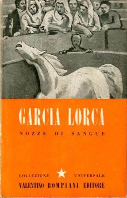 186 p. ; 18 x 11 cm. Corona. Collezione universale Bompiani. "Nozze di sangue" è un dramma teatrale in tre atti scritto da Federico García Lorca nel 1932 ispirandosi ad un fatto di cronaca avvenuto a Níjar in Andalusia nel 1928. La Madre, una possidente a cui sono stati uccisi il marito e un figlio in una faida, discute con il figlio superstite del prossimo matrimonio di quest'ultimo con una giovane contadina che frequenta ormai da tre anni. La Madre è un po' perplessa perché ha sentito che la ragazza ha avuto un corteggiatore, ma ammette che ha una buona reputazione. Poco dopo la Vicina ne dà conferma ma, facendole sapere che il vecchio pretendente è sposato da due anni con una cugina della giovane, gli rivela che si tratta Leonardo dei Felix, un membro della famiglia rivale, sebbene ancora bambino all'epoca della faida. Nonostante ciò Madre e figlio, futuro Sposo, si presentano dal Padre della futura Sposa portando ricchi doni per accordarsi sulle nozze imminenti. La giovane accetta di buon grado il matrimonio, ma Leonardo, nonostante abbia Moglie e un figlio, le gira ancora intorno e questo la turba. Il giorno delle nozze, alla festa sono presenti i parenti dello Sposo e quelli della Sposa, quindi anche la cugina con Leonardo. La Sposa, manifestando stanchezza si apparta dicendo allo Sposo di aver bisogno di un breve riposo. Ben presto però ci si accorge che la Sposa è scomparsa e la Moglie di Leonardo, già insospettita e gelosa, dice di averla vista fuggire sul cavallo abbracciata con lui. Lo Sposo, montato su un cavallo, va ad inseguirli e dietro di lui anche i suoi parenti. In un bosco, attraversato da alcuni Boscaioli, dalla Luna e poi da una Mendicante che a un certo punto conduce lo Sposo verso il suo destino, Leonardo e la Sposa rivelano il loro reciproco impossibile amore e si rassegnano alla Morte. Ma la Sposa tornerà, illibata, a confrontarsi con la Madre e a piangere i due uomini che, accoltellatisi a vicenda, sono morti per lei. Titoli originali dell'opera: "Llanto por Ignacio Sánchez Mejías. Bodas de sangre. Dialogo del amargo". A cura di (traduzione) Elio Vittorini. Brossura editoriale, coperta in cartoncino flessibile di colore grigio, sovraccoperta illustrata a colori. Sovraccoperta con segni del tempo ai profili, pagine interne ingiallite. Firma di appartenenza con data (1944) nel frontespizio. Codice libreria 3727.