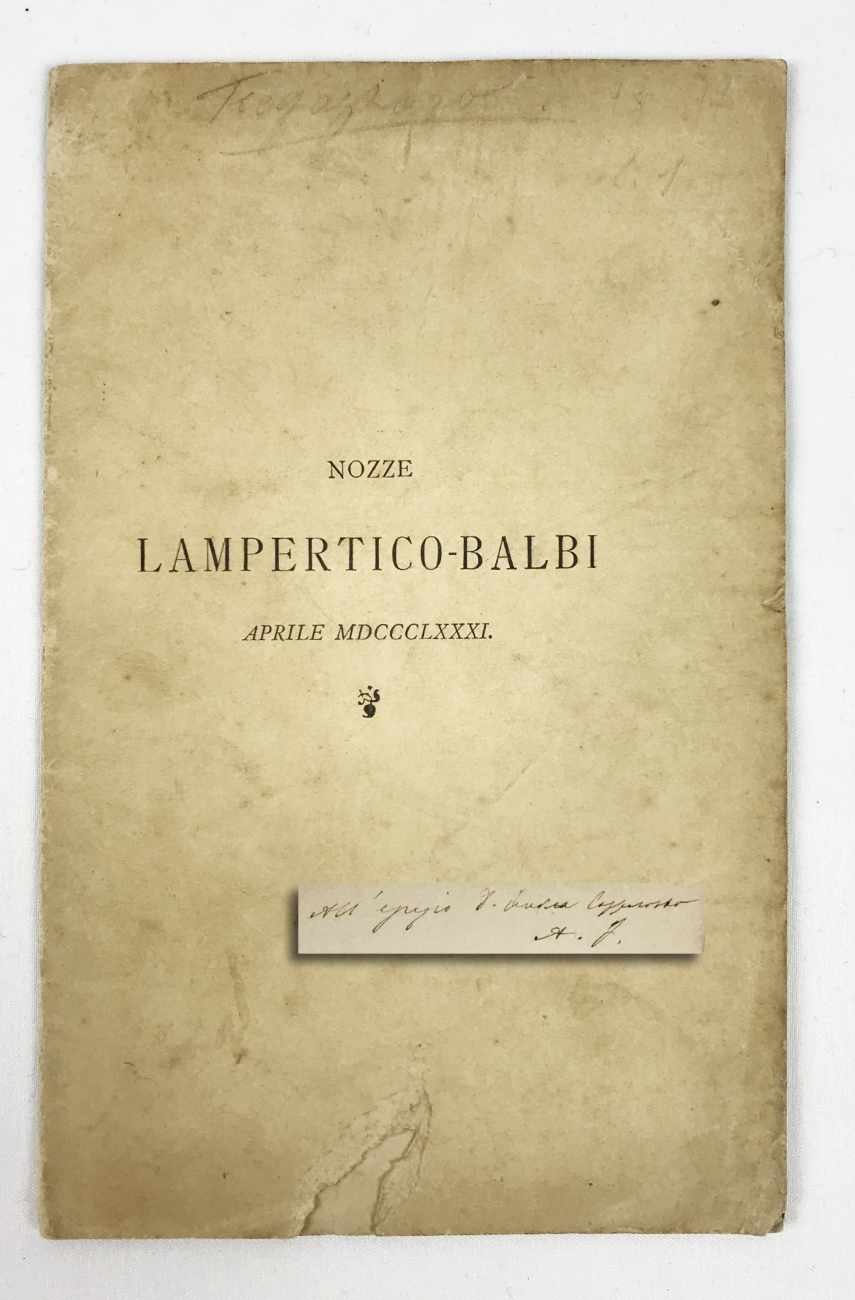 Nozze Lampertico - Balbi. Aprile MDCCCLXXXI [«La colonna d’Autari»]