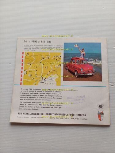 NSU Prinz I - Prinz II - Prinz II E 1960 depliant originale italiano