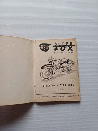 NSU Super Fox 125 1956 manuale uso manutenzione libretto originale italiano