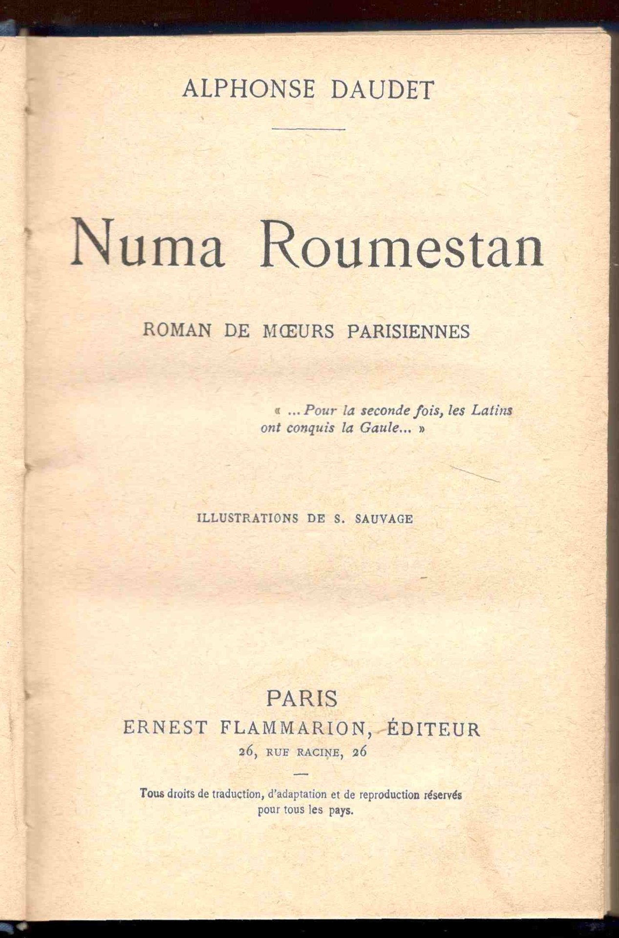 Numa Roumestan. Roman de moeurs parisiennes. Illustrations de S. Sauvage.