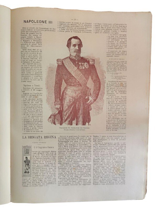 Numero unico illustrato di Quinto Cenni. Lotto di 9 numeri: "Roma e Berlino", Maggio 1887; "I granatieri", Luglio 1887; "Aosta la Veja", marzo 1890; "Nizza cavalleria", luglio 1890; "L'esercito e l'Armata", giugno 1891; "Palestro", maggio 1893; "I carabinieri reali", luglio 1902; "La memoria del IV centenario della disfida di Barlezza", febbraio 1903; "Avanti l'artiglieria", maggio 1904.