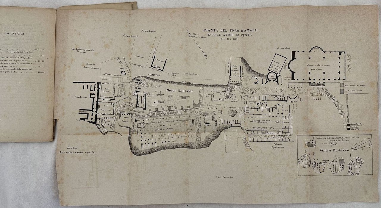 NUOVA DESCRIZIONE DELLA CASA DELLE VESTALI E DEGLI EDIFIZI ANNESSI SECONDO IL RISULTATO DEI PIU RECENTI SCAVI PRECEDE UN BREVE ITINERARIO DEL FORO ROMANO VI E'UNITA UNA PIANTA GENERALE DEI MONUMENTI ED UNA INCISIONE INTERCALATA NEL TESTO
