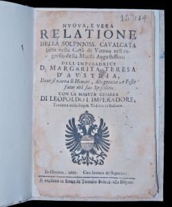 Nuova, e vera Relatione della Soleniss. Cavalcata fatta nella Città di Vienna nellIngresso della Maestà Augustissima dellImperatrice D. Margarita Teresa dAustria, dove si narra li Honori, Allegrezze, e Feste fatte nel suo Sposalizio con la.