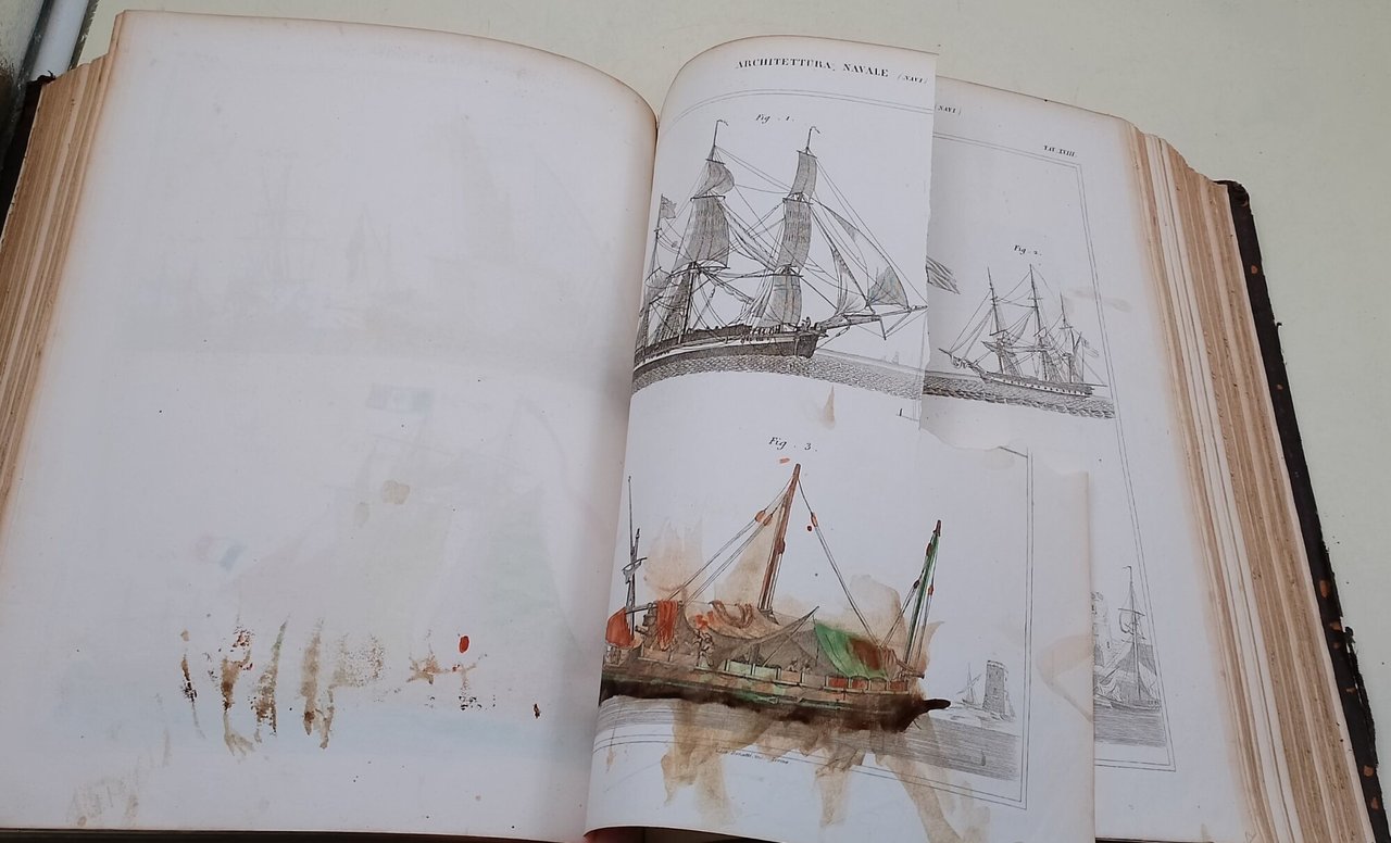 in 4, mz. pelle tit. al dorso, pp, XXIII di prefazione a firma del direttore dell'Enciclopedia, e LIV tavole e IV in fine di topografia di Roma , di Atene e di Gerusalemme; privo di frontespizio, abrasioni alla cop., rottura della costa alla testa del dorso, una pagina ritagliata con evideti segni di sporco(foto), restante discreto, bruniture fioriture e segni del tempo. ***Due to bureaucratic reasons, books dated over 70 years old cannot be immediately exported, please contact us before placing the order.***