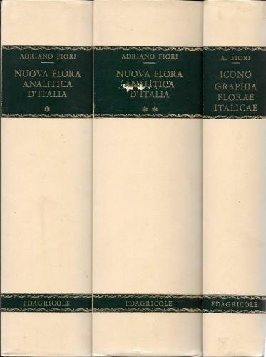 3 grossi volumi in 8°, pp. X, 2 nn., 944; 8 nn., 1120; X, 549, legatura in m/pergamena con angoli, tasselli con titoli in oro ai dorsi, cofanetto artigianale rilegato. Seconda ristampa anastatica dell'ediz. di Firenze del 1923-25-33 della Tipografia di Mariano Ricci. Il vol. 2° contiene in fine l'indice generale e l'indice degli autori dei prini 2 voll. Il vol. 3°, Flora italiana illustrata contiene 4419 figure in nero, l'indice dei nomi volgari e dei nomi latini di tutte le specie di piante vascolari indigene inselvatichite e coltivate. Come nuovo. 191/38