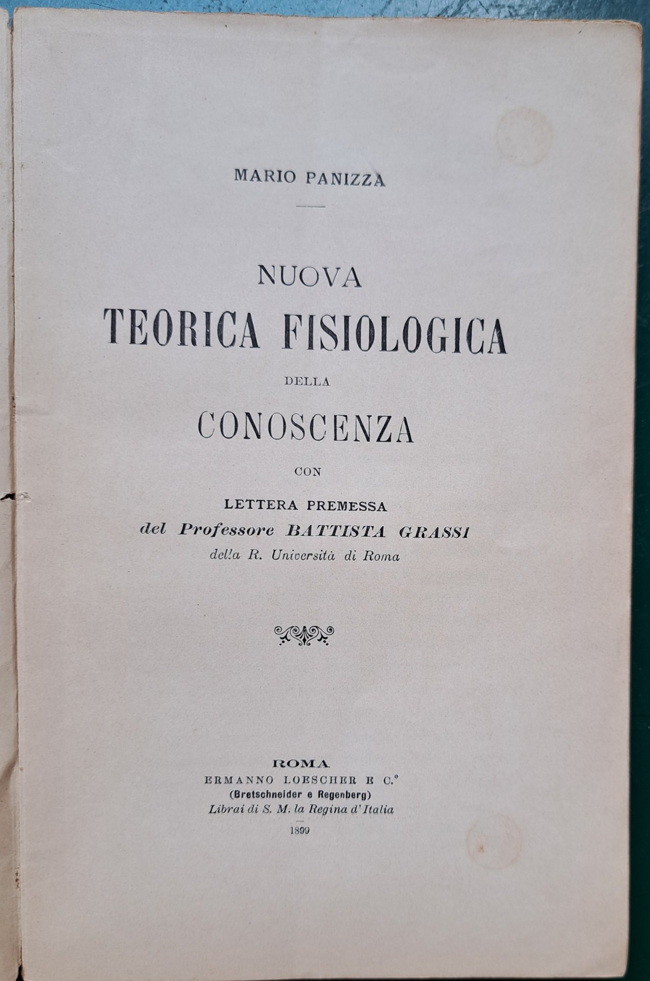 Nuova teorica fisiologica della conoscenza. Con lettera premessa del Professore Battista Grassi