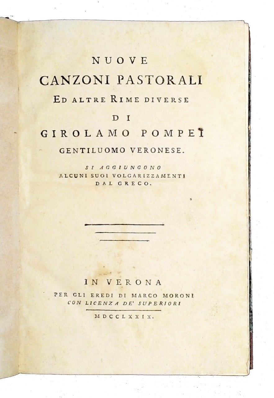 Nuove canzoni pastorali ed altre rime diverse di Girolamo Pompei gentiluomo veronese. Si aggiungono alcuni suoi volgarizzamenti dal greco.
