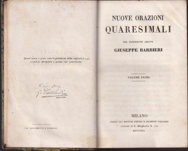 Nuove orazioni quaresimali, 2 voll. in unico libro.