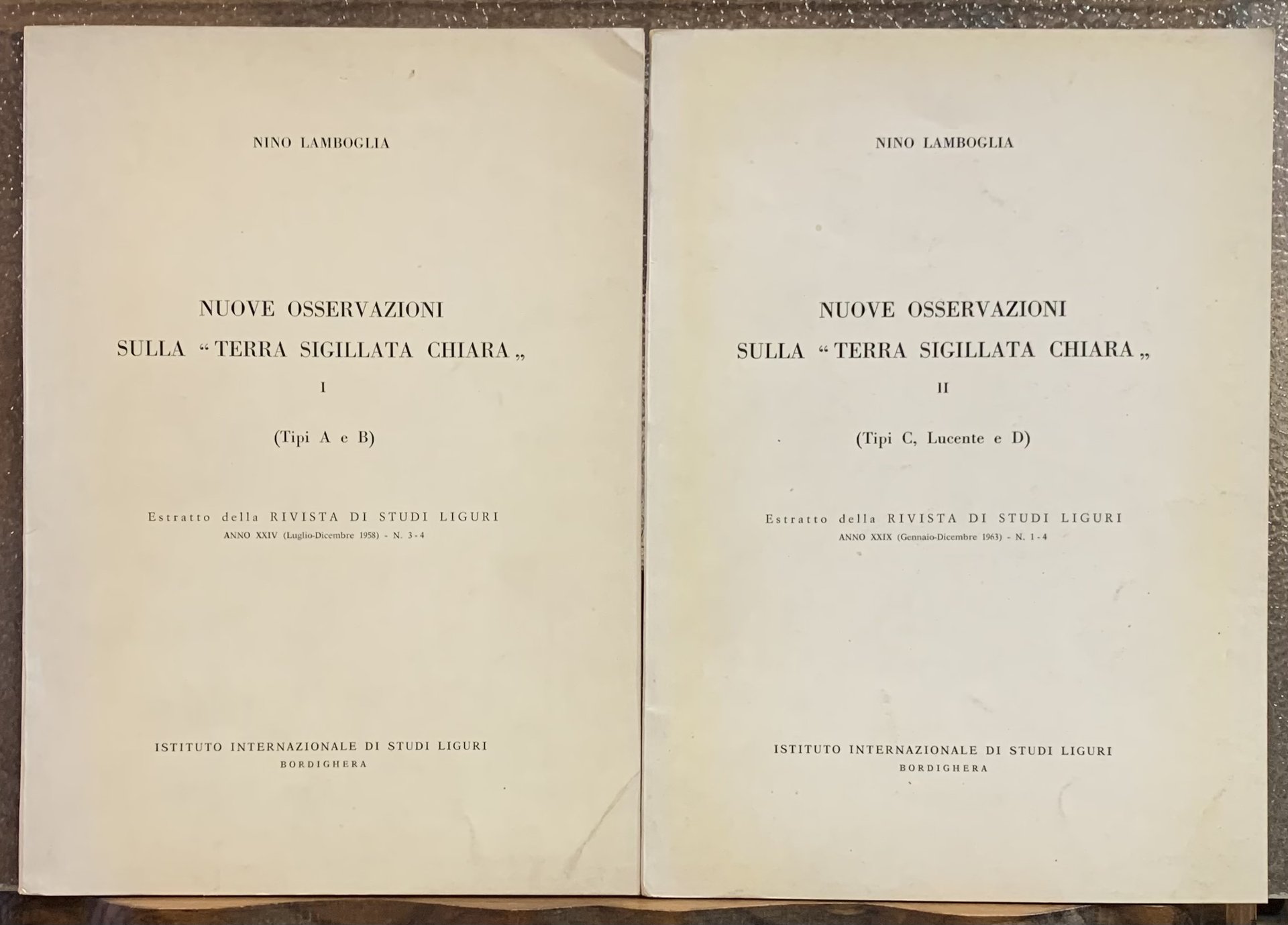 NUOVE OSSERVAZIONI SULLA "TERRA SIGILLATA CHIARA"; I ) (Tipi A e B) Anno XXIV - luglio-dicembre 1958; N. 3-4 / II) (Tipi C, Lucente e D) Anno XXIX - gennaio-dicembre 1963; N. 1-4.
