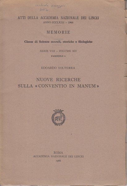 Nuove Ricerche Sulla Conventio In Manum
