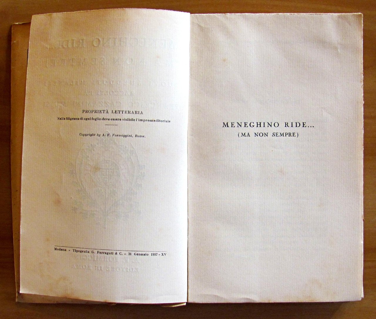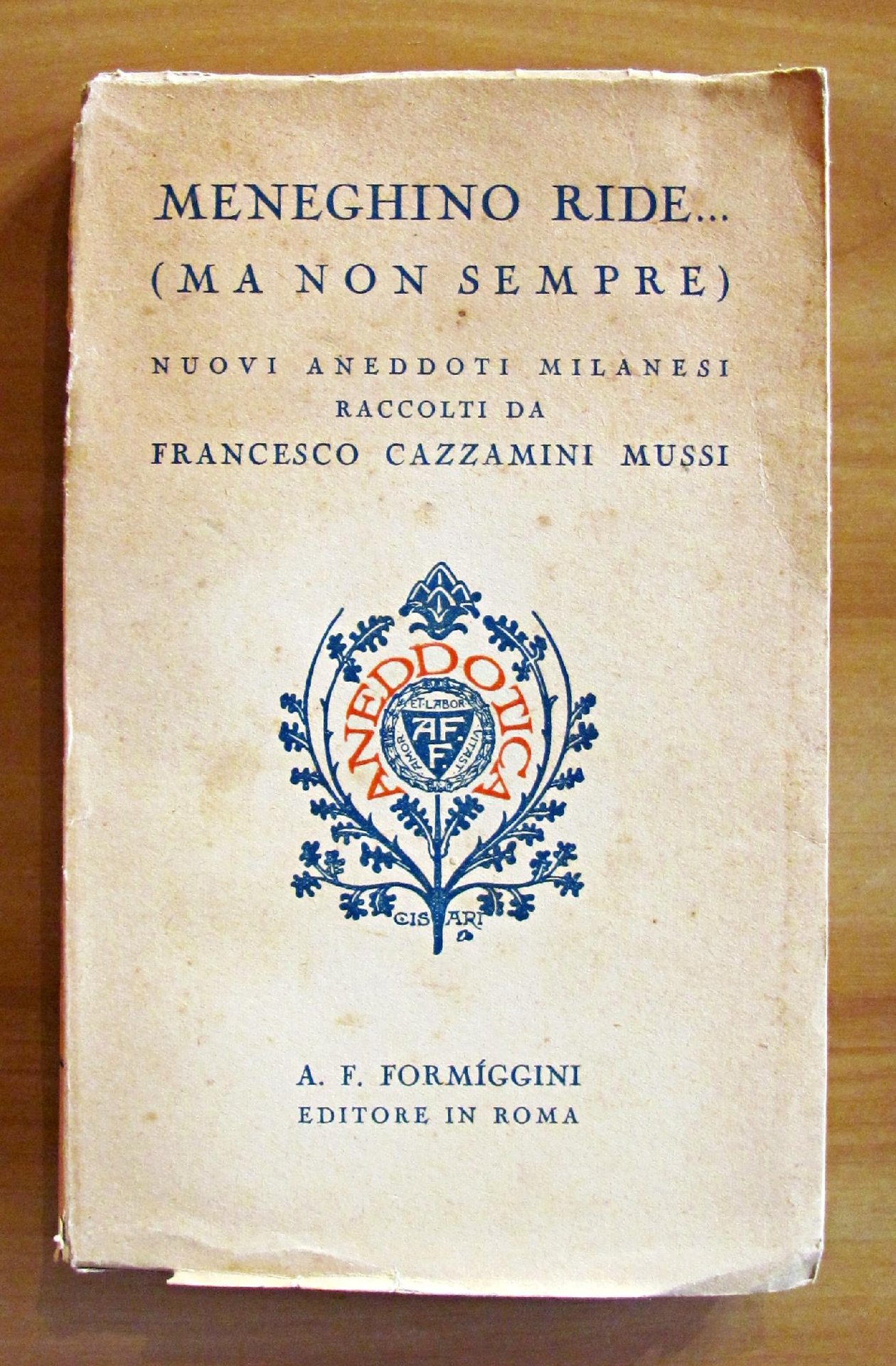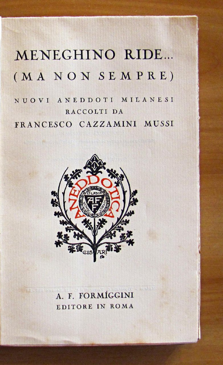 Fregio in copertina e al frontespizio di Cisari. Editore Formiggini - Roma, I edizione 1939. Brossura editoriale con ali. Lievi imperfezioni al dorso e minime fioriture del tempo alle copertine. 13,5x21; pp.292. Buonissimo stato.  , Molto buono (Very Good)