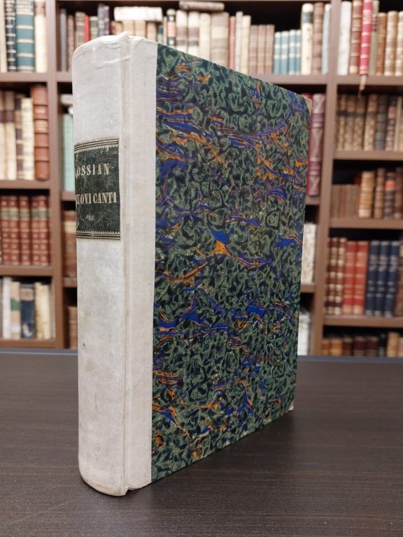 In-8° (cm. 22,1), legatura di poco successiva in mezza pergamena con titolo in oro su tassello verde al dorso, piatti marmorizzati; pp. 391 [1b] in barbe, in stato molto buono (alcune fioriture). Pubblicati in inglese da John Smith e <span style="font-style: normal; font-size: 13.3333px;">«</span><i>recati in italiano da Michele Leoni</i><span style="font-style: normal;">». Stemma tipografico al frontespizio e ritratto di Ossian inciso all'antiporta fuori testo. Buon esemplare. (NA3)</span>