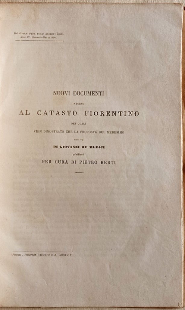 Nuovi documenti intorno al catasto fiorentino pei quali vien dimostrato che la proposta del medesimo non fu di Giovanni de' Medici.