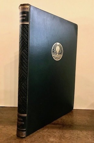 8vo (cm. 24), XIII pp., 1 c.nn., 196 pp., 2 cc.nn. Legatura editoriale in pelle verde con fili, fregi e titoli oro al dorso. Un medaglione impresso in oro con la sigla pascoliana ‘sub arbuto’ al piatto anteriore. Edizione a tiratura limitata e numerata di 999 esemplari (nostro n. 729). Ottimo stato di conservazione.