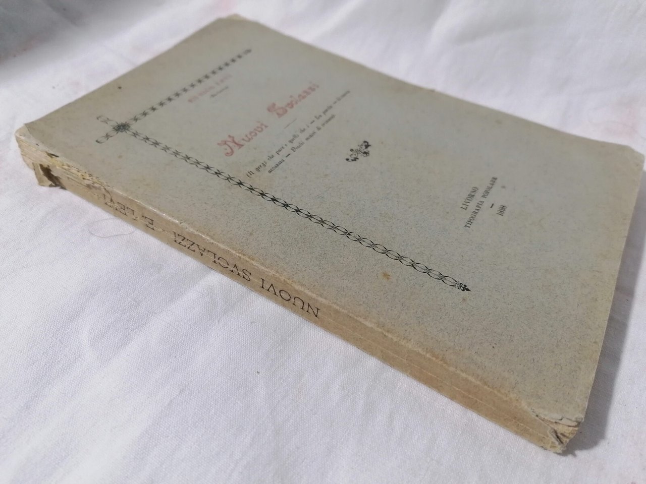 Autografato con dedica a penna sul terzo foglio. Condizioni mediocri, accettabili compatibilmente con l'età (principio di scollatura)
