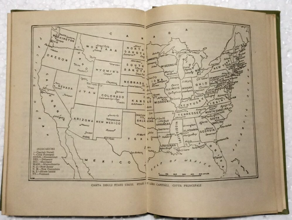 NUOVISSIMA GRAMMATICA ACCELERATA ITALIANA-INGLESE di A. De Gaudenzi. ed enciclopedia popolare con pronunzia divisa in 11 parti: grammatica - vocabolario - nomenclatura - dialoghi - lettere - aritmetica - storia - cittadinanza - costituzione ecc. Italian Book Company 1948. 429 pagine, figure in bianco e nero nel testo. Copertina editoriale in tutta tela. Stato di conservazione: molto buono (pagine normalmente ingiallite)