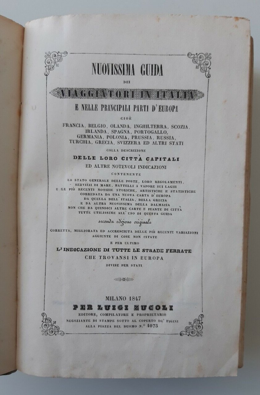 NUOVISSIMA GUIDA DEI VIAGGIATORI IN ITALIA DI LUIGI ZUCOLI 1847