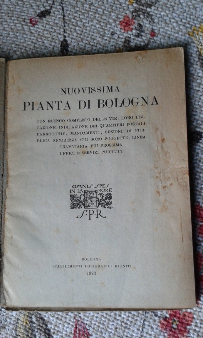 Fascicolo in 8, brossura editoriale (piatto staccato), titolo al piatto, frontespizio, 56 pp., grande carta pi volte ripiegata. Elenco completo delle vie, loro ubicazione, indicazione dei quartieri postali, parrocchie, mandamenti, sezioni di pubblica sicurezza cui sono soggette, linea tramviaria pi prossima, uffici e servizi pubblici. Sporadica fioritura della carta, in bello stato, interessante, poco comune in queste condizioni.