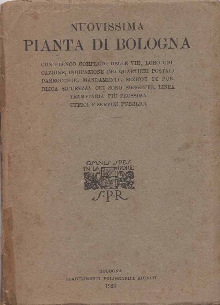 Incicazioni di vie, quartieri parrocchie linee tranviarie e uffici pubblici. Pianta ripiegata di cm 50x70. Dorso tenuto assieme da due punti di scotch