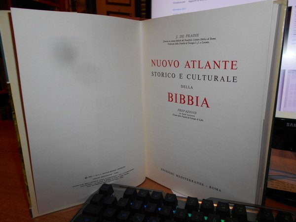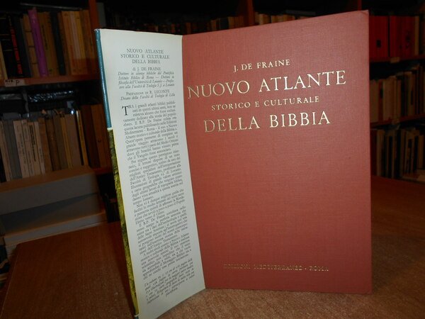 J. DE FRAINE. Roma, Edizioni Mediterranee, 1962. Nuovo ATLANTE Storico e Culturale della BIBBIA. Prefazione di René Leconte. In-8° grande, tela edit. con titoli in oro sul piano e al dorso, sovracopertina ill. a col. v, 274 pp. con numerose illustrazioni in bianco e nero e cartine a colori. In ottimo stato di conservazione. Neg. esot. mob. 72 in basso