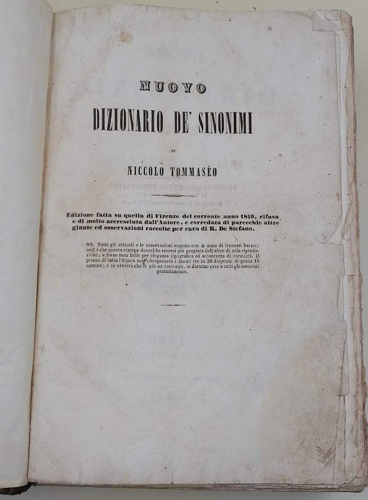 NUOVO DIZIONARIO DEI SINONIMI DELLA LINGUA ITALIANA( 1840)
