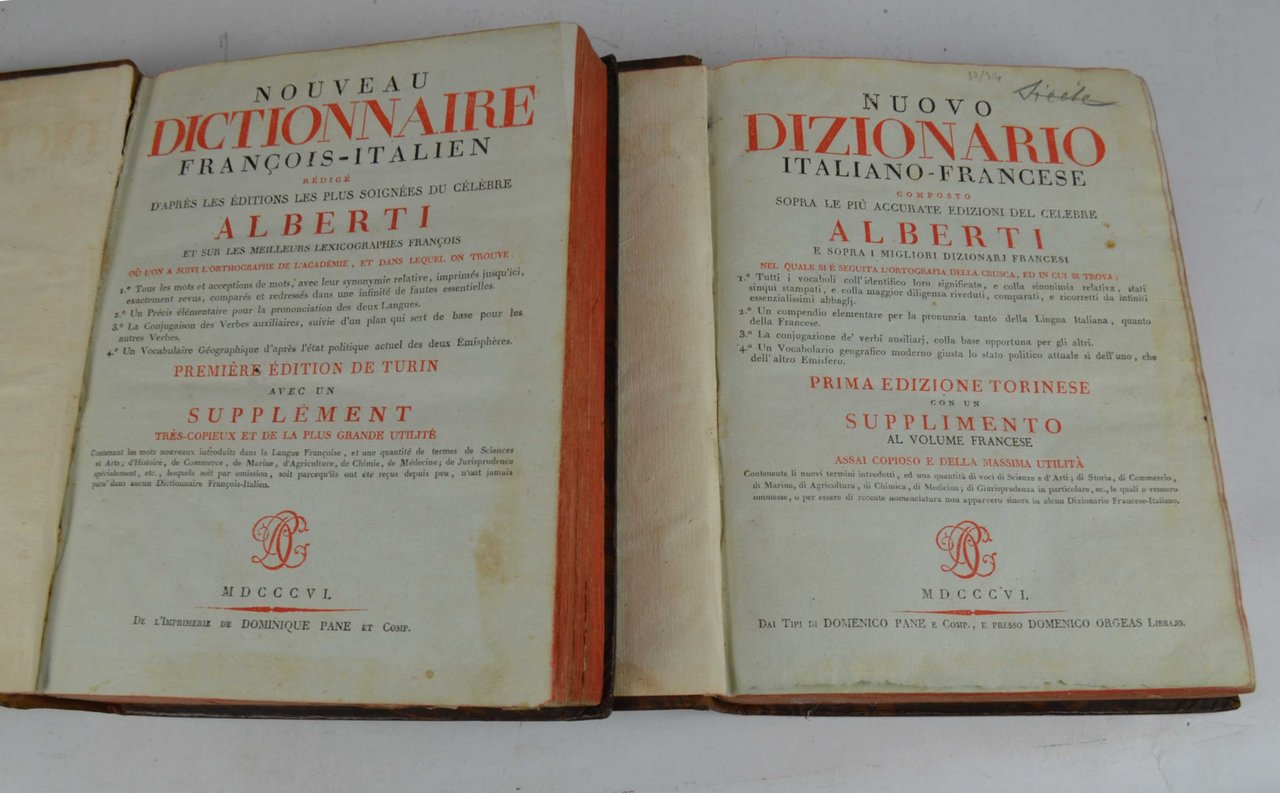 Nuovo Dizionario Italiano-Francese composto sopra le più accurate edizioni... Prima edizione torinese con un supplemento al volume francese...