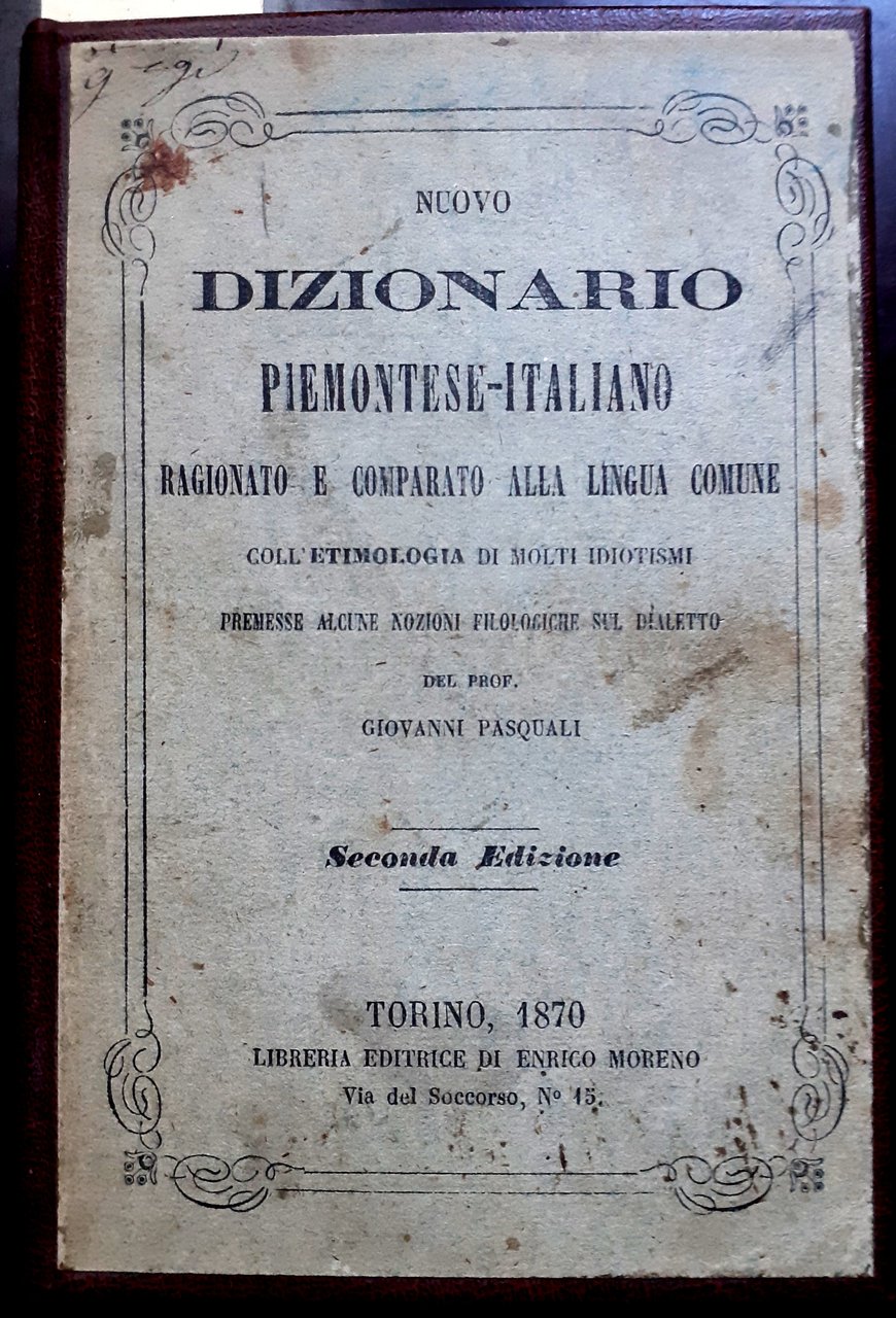 NUOVO DIZIONARIO PIEMONTESE-ITALIANO, RAGIONATO E COMPARATO ALLA LINGUA COMUNE, COLL'ETIMOLOGIA DI MOLTI IDIOTISMI, PREMESSE ALCUNE NOZIONI FILOLOGICHE SUL DIALETTO.