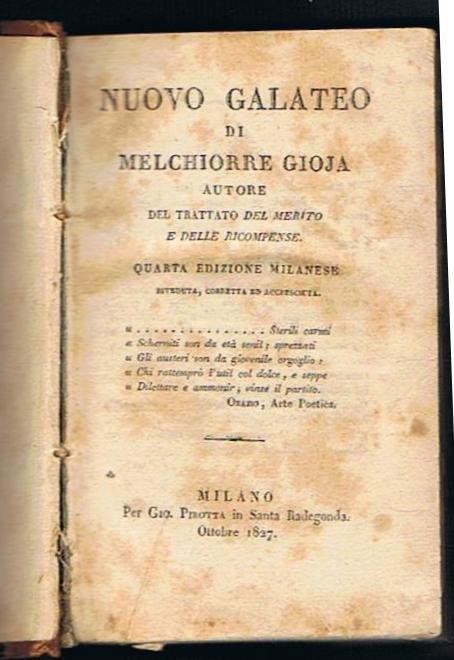 Nuovo galateo di Melchiorre Gioja autore del merito e delle ricompense quarta edizione milanese