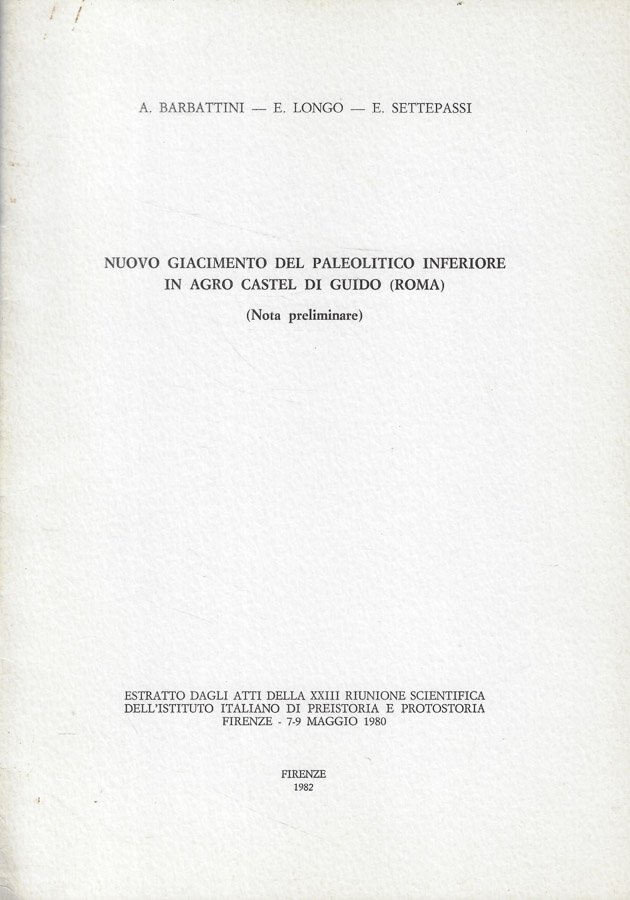 Estratto dagli Atti della XXIII Riunione Scientifica dell'Istituto Italiano di Preistoria e Protostoria tenutasi a Firenze dal 7 al 9 maggio 1980. Piatti in cartoncino, poco brunite ed in buono stato generale. Pagine lievemente ingiallite, salde, con ampio margine e con 1 figure in bianco e nero, nel testo. Numero pagine 5 (numerate da 561 a 566).
