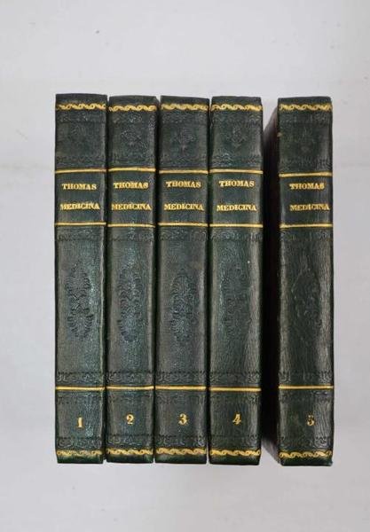 Cinque parti in cinque volumi di cm. 19, pp. 1.200 ca. complessive. Legatura coeva in mezza pelle, dorsi lisci fregi a secco, titoli e filetti in oro. Sguardie marmorizzate. Esemplare genuino e ben conservato.