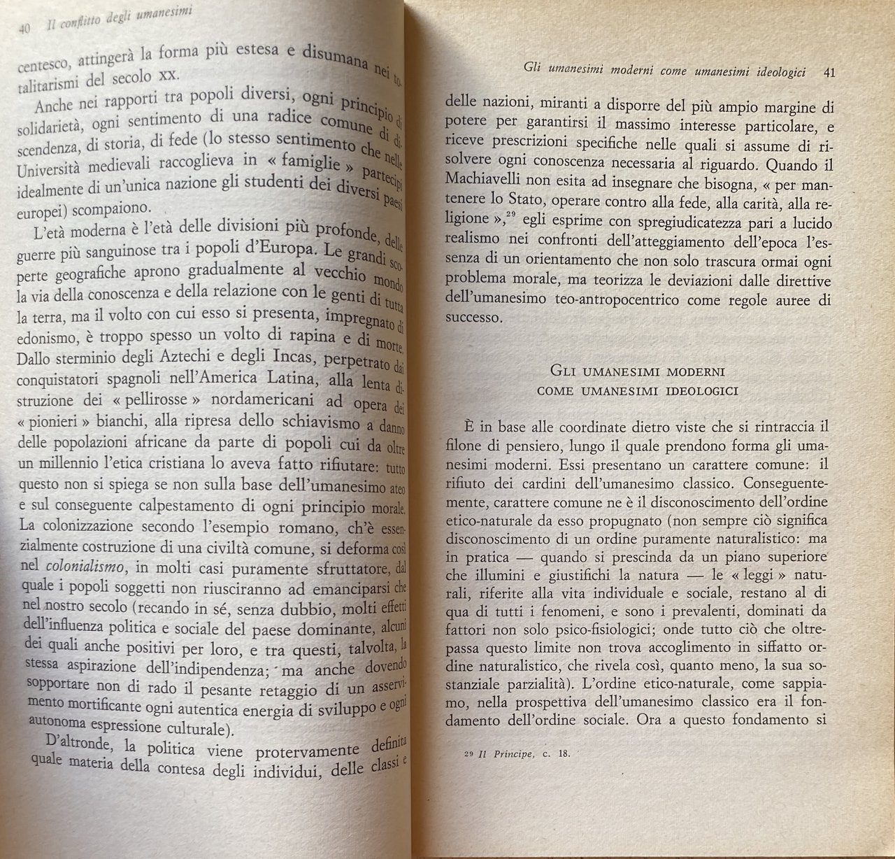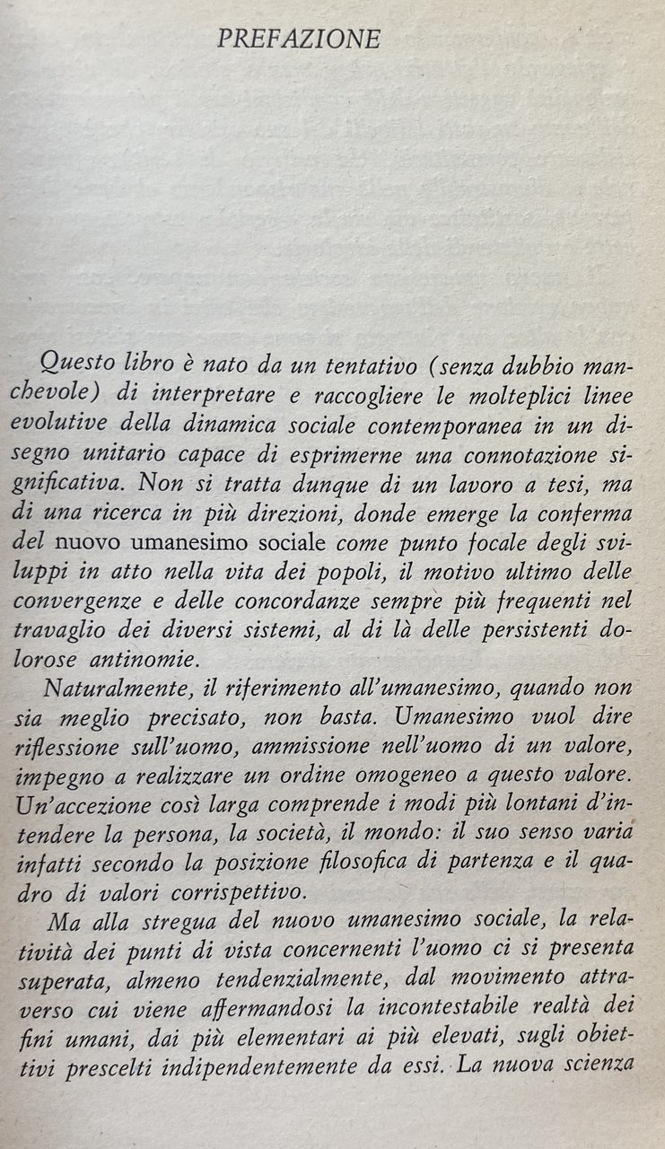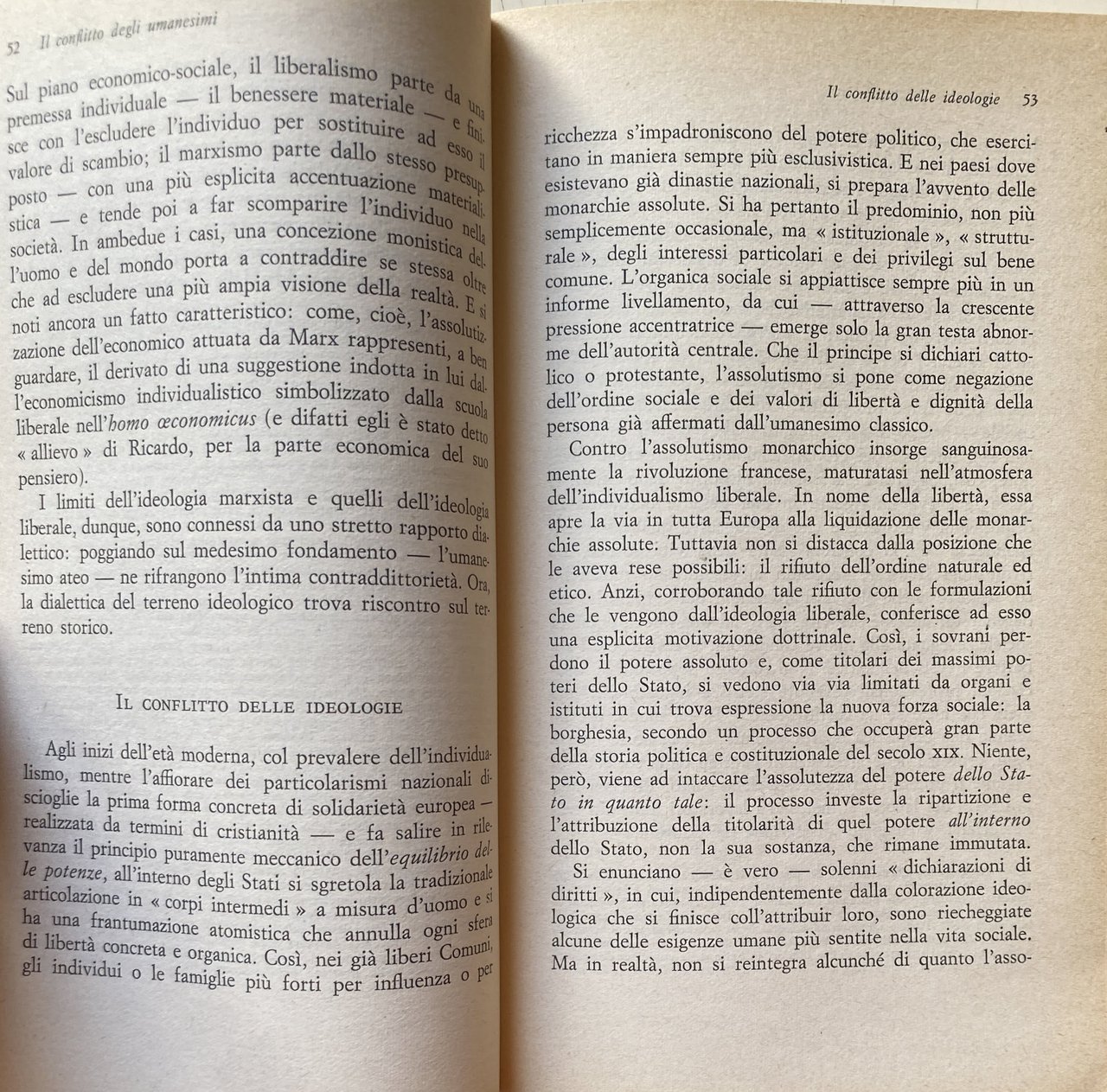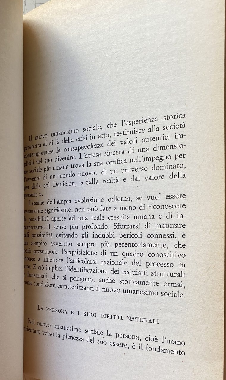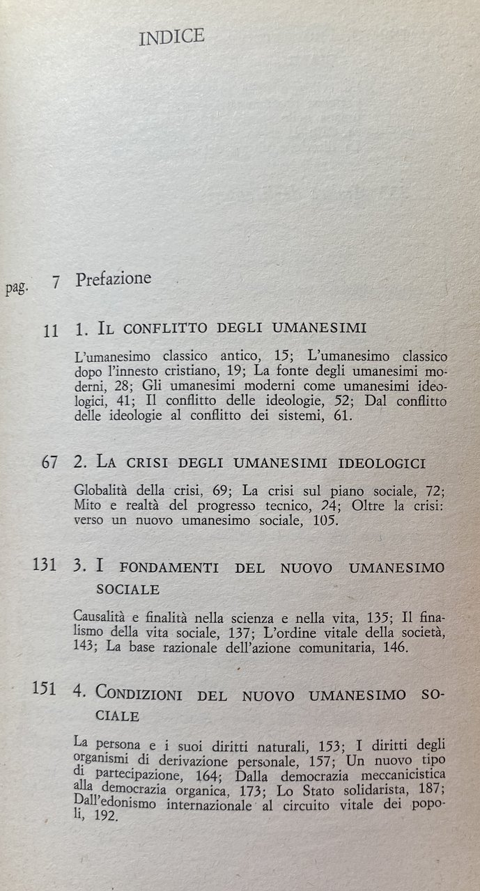 Soggetti: Socialismo, Religione, Società, Sociologia, Scienze sociali, Politica, Partiti politici, Rappresentanza, Democrazia, Diritti umani, Diritto, Ideologie politiche, Partecipazione, Attivismo, Chiesa, Cristianesimo, Cattolicesimo, Storia, Liberalismo, Libertà, Scienza, Filosofia morale, Cultura, Sentire comune, Natura umana, Silvano Panunzio, Sociologi cattolici italiani, De Maistre, Taparelli D'Azeglio, Giuseppe Toniolo, Magistero sociale, Pio XII, Movimento operaio, Ricerca, Riferimento, Cristianità, Giustizia sociale, Progresso, Crisi, Marxismo, Dignità, Persona, Valori, Etica, Umanesimo integrale, Jacques Maritain, Consultazione, Metafisica, Leumann, Bibliografia, Humanism, Umanesimi, Stato, Edonismo, Consumismo, Diritti naturali, Finalismo, Ordine vitale, Comunitarismo, Comunità, Solidarietà, Collaborazione, Tecnologia, Tecnica, Modernità, Economia, Sant'Agostino, Giuseppe Menegazzi, Johan Huizinga, Engels, Marx, Giovanni XXIII, Cornelio Fabro, Giuseppe Di Nardi, Benedetto Croce, Dante Alighieri, Nicolas Berdiaeff, Feuerbach, Henri-Marie de Lubac, Guido De Ruggiero, Emmanuel Mounier, J.R. Moore, Nicola Narduzzi, Machiavelli, Paolo VI, Platone, Nicola Pende, David Riesman, Jean-Paul Sartre, Oswald Spengler, Luigi Sturzo, Tocqueville, Tommaso d'Aquino, Elémire Zolla, Max Weber, Giambattista Vico, Dostoevskij, Alberto Moravia, Ignazio Silone, Luisa Maria Riva Sanseverino, Pietro Prini, Blaise Pascal, Ortega y Gasset, P. Siena, Gabriel Marcel, Dino Del Bo, Thomas Eliot, Alcide De Gasperi, Sergio Cotta, Pedagogia, Libri rari Vintage fuori catalogo, Collezionismo, Ateismo, Teologia, Lotta di classe, Riduzionismo, Totalitarismo, Schiavitù, Sfruttamento, Capitalismo, Guerre, Pacifismo, Armamenti, Anni Sessanta, Anni Settanta, Terzo Mondo, Fame, Intolleranza, Razzismo, Antisemitismo, Africa, America Latina, Conflitti, Potenze, Materialismo, Dialettica, Povertà, Proletariato, Gramsci, Collettivismo, Socialism, Religion, Society, Sociology, Social sciences, Politics, Political parties, Representation, Democracy, Human rights, Law, Political ideologies, Participation, Activism, Church, Christianity, Catholicism, History, Liberalism, Freedom, Science, Moral philosophy, Culture, Common feeling, Human nature, Italian Catholic sociologists, Social teaching, Pius XII, Worker movement, Research, Reference, Christianity, Social justice, Progress, Crisis, Marxism, Dignity, Person, Values, Ethics, Integral humanism, Consultation, Metaphysics, Bibliography, Humanisms, State, Hedonism, Consumerism, Natural rights, Finalism, Vital order, Communitarianism, Community, Solidarity, Collaboration, Technology, Technique, Modernity, Economy, St. Augustine, Paul VI, Plato, Thomas Aquinas, Pedagogy, Out-of-print rare books, Collecting, Atheism, Theology, Class struggle, Reductionism, Totalitarianism, Slavery, Exploitation, Capitalism, Wars, Pacifism, Armaments, Sixties, Seventies, Third World, Hunger, Intolerance, Racism, Anti-Semitism, Conflicts, Powers, Materialism, Dialectic, Poverty, Proletariat, Collectivism