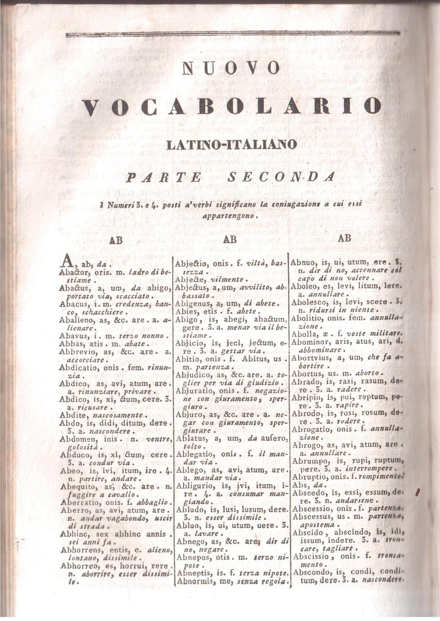 Nuovo vocabolario italiano-latino, latino-italiano compilato da Carlo Mandosio. Nuovamente corretto, notabilmente accresciuto,ed accomodato all'uso delle Scuole d'Italia da Girolamo Tiraboschi col vocabolario domestico Inserito a suoi luoghi, ed i nomi in fine delle provincie, città, ecc. raccolti in un sol corpo